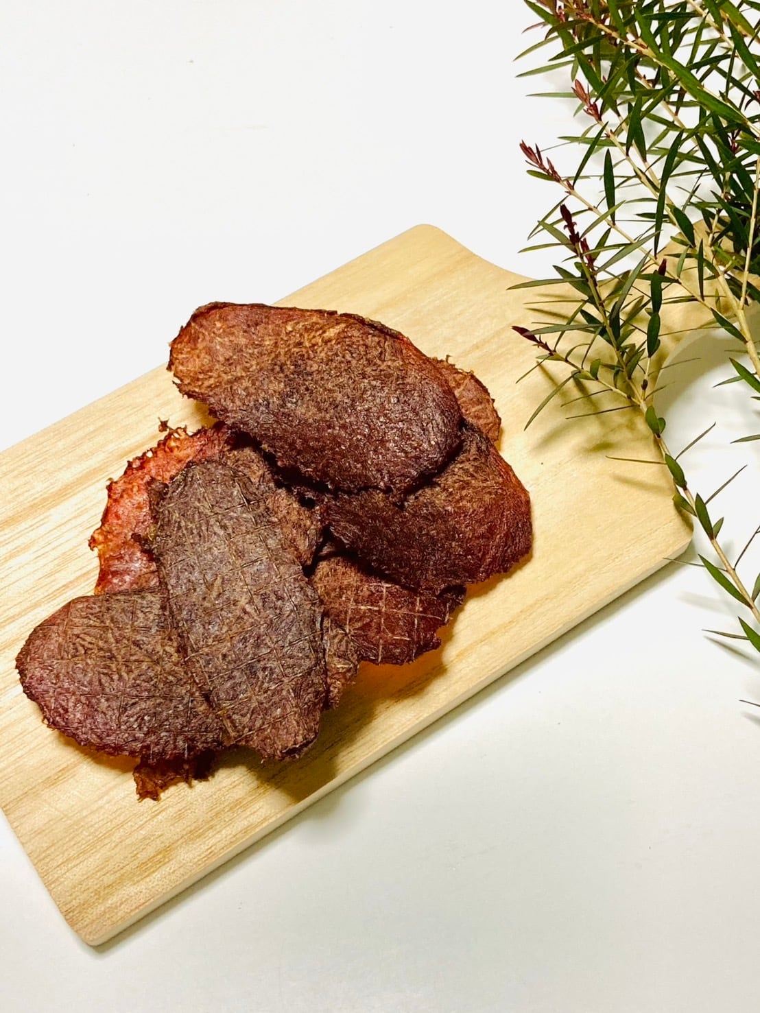新鮮なヒレやロースを贅沢に使用し、食品衛生法の基準に適合した衛生的な食肉処理施設で加工されたこのジャーキーは、やわらかくて食べやすい仕上がりです。
