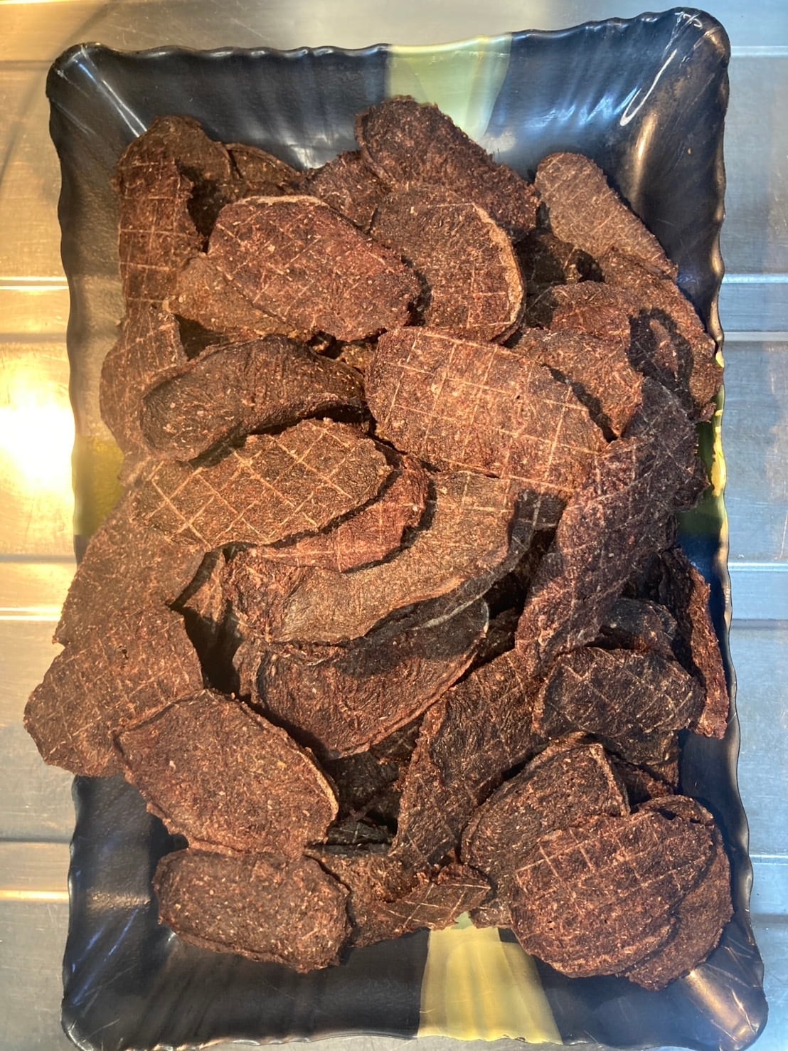 新鮮な鹿肉を使用し、ヒレやモモなどの贅沢な部位を取り入れたこのみんちジャーキーは、やわらかく、筋が切られているため、手で折りやすいく好きなサイズでわんちゃんにあげられます。