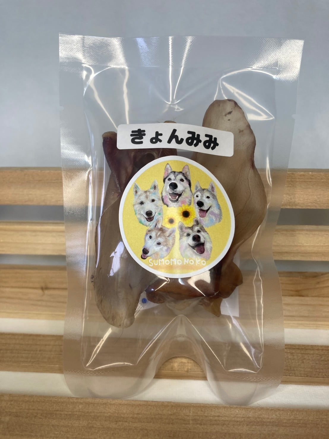 新鮮なきょんの耳を使用し、湯向きで毛を取り除いた安全なジャーキーです。